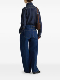 wide-waistband jeans Highlights - Dark blue - Wide waistband - Gold-tone button fastening - Pleated front - Back pockets - Embroidered logo Imported Composition Cotton 100% Washing instructions Machine Wash