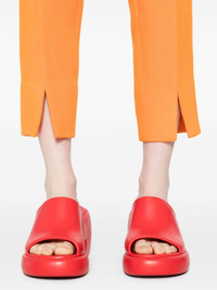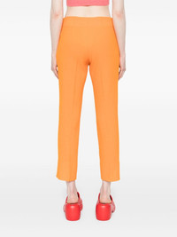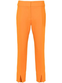 wool cropped trousers Highlights - Pumpkin orange - Virgin wool - Crepe texture - Pressed crease - Front slits - Cropped leg - Concealed front button, hook and zip fastening Imported Composition Virgin Wool 100% SIZE & FIT Model measurements Height 5 ft 9 in(1.75 m) Bust/Chest 34.64 in(88 cm) Hips 36.61 in(93 cm) Waist 26.37 in(67 cm) FittingInformation Designed for a slim fit, these trousers offer a close fit at the waist, allowing a comfortable close fit and some movement over the leg Made from a midweight non-stretch fabric, this piece offers minimal elasticity when worn This piece fits true to size – take your usual size