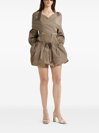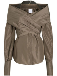 wrap blouse Highlights - Barley brown - Concealed front button fastening - Rear tie fastening - Long puff sleeves - Curved hem Imported Composition Recycled Polyester 100%