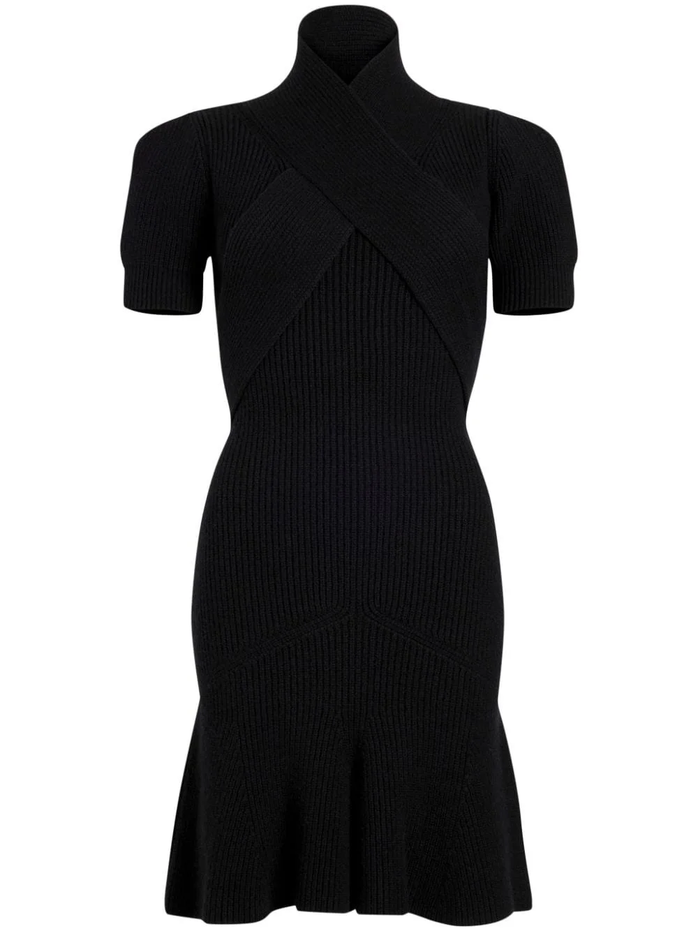 wrap mini dress Highlights - Black - Merino wool - Ribbed knit - Wrap design - High neck - Short sleeves - Flared hem - Thigh-length Imported Composition Merino 100%