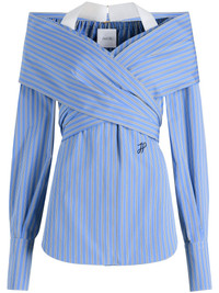 wrap poplin blouse Highlights - Cornflower blue - Self-tie fastening - Buttoned-cuff sleeves - Off-shoulder - Layered design Imported Composition Organic Cotton 100%