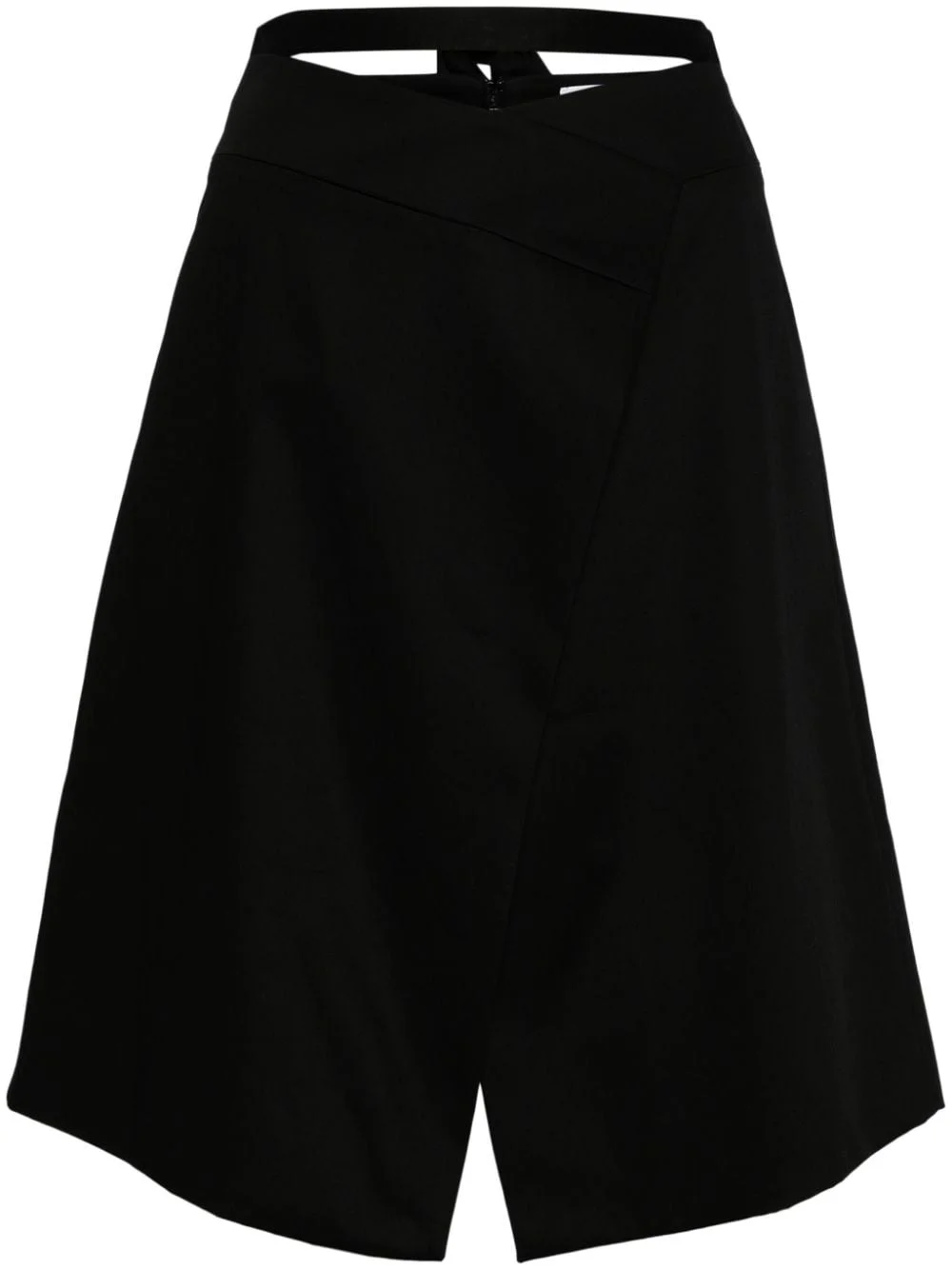 wraparound gabardine midi skirt Following the brand's casual style, this knee-length skirt from Patou is crafted from black cotton. The cut-out waist and front slit add a contemporary touch. Highlights - Black - Cotton - High-waisted - Cut-out detailing - Front slit - Rear tie fastening - Concealed rear zip fastening - Knee-length Imported Composition Cotton 100% SIZE & FIT Model measurements Height 5 ft 9 in(1.75 m) Bust/Chest 31.88 in(81 cm) Hips 35.03 in(89 cm) Waist 23.22 in(59 cm) FittingInformation This midi-length skirt is intended to be worn high on the waist The tie fastening gives an adaptable and personalised fit Made from a midweight non-stretch fabric This piece fits true to size – take your usual size