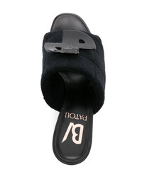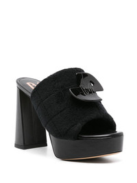 x Bettina Vermillon 110mm Anita sandals Highlights - Black - Logo plaque - Towelling finish - Short pile design - Slip-on style - Square open toe - Branded leather insole - 110mm block heel - Leather outsole Made in Italy Composition Outer: Lambskin 60%, Cotton 40% SIZE & FIT Measurement HEEL 4.33 in(11 cm) Sole height 1.18 in(3 cm)