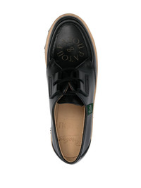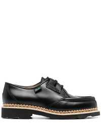 x Paraboot lace-up leather shoes For its collaboration with Paraboot, Patou takes on the shoemaker's iconic lace-up Derby and lends it a signature stamp. Crafted from smooth black leather, this style boasts a logo print at the toe and a contrasting scalloped trim at the welt. Highlights - Black - Calf leather - Logo print to the front - Tonal stitching - Scallop edge - Round toe - Front lace-up fastening - Ridged rubber sole Made in France Composition Leather 100% SIZE & FIT Measurement HEEL 1.18 in(3 cm) Sole height 0.78 in(2 cm)