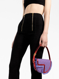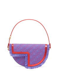 x Sita Le Petit Patou shoulder bag Made from recycled cotton and calf leather in purple, blue and red, Patou's Le Patou bag is defined by its curve-edge body and cut-out foldover flap. Elevated with polished gold-tone hardware, this accessory benefits from an adjustable shoulder strap. Highlights - Purple/blue/red - Recycled cotton - Leather trim - Single flat top handle - Front flap closure - Fringe detailing - Gold-tone hardware Imported Composition Outer: Recycled Cotton 70%, Calf Leather 30% SIZE & FIT Model measurements Height 5 ft 9 in(1.76 m) Bust/Chest 31.49 in(80 cm) Hips 36.61 in(93 cm) Waist 24.8 in(63 cm) Measurement DEPTH 1.57 in(4 cm) HEIGHT 5.11 in(13 cm) STRAP 5.9 in(15 cm) WIDTH 8.66 in(22 cm) HANDLE 5.11 in(13 cm)