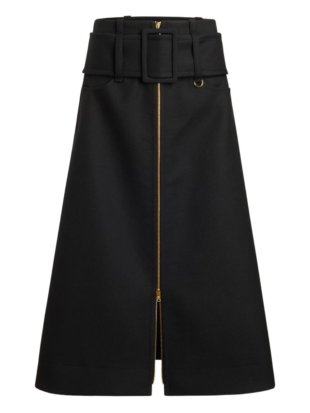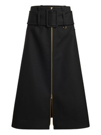 zip-front belted midi skirt Highlights - Black - A-line shape - Buckled belt - Centre-front zip fastening - Side pockets Imported Composition Outer: Virgin Wool 100% Lining: Viscose 100% SIZE & FIT Measurement HIPS 36.22 in(92 cm) LENGTH 33.46 in(85 cm) WAIST 26.77 in(68 cm) Washing instructions Dry Clean Only