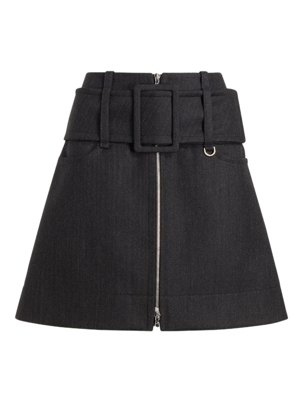 zip-front belted mini skirt Highlights - Black - Wool - Zip front - Wide belt - Buckle fastening Imported Composition Outer: Virgin Wool 100% Lining: Viscose 100% SIZE & FIT Measurement HIPS 37.79 in(96 cm) LENGTH 37 in(94 cm) WAIST 29.13 in(74 cm) Washing instructions Read Manufacturer Guidelines