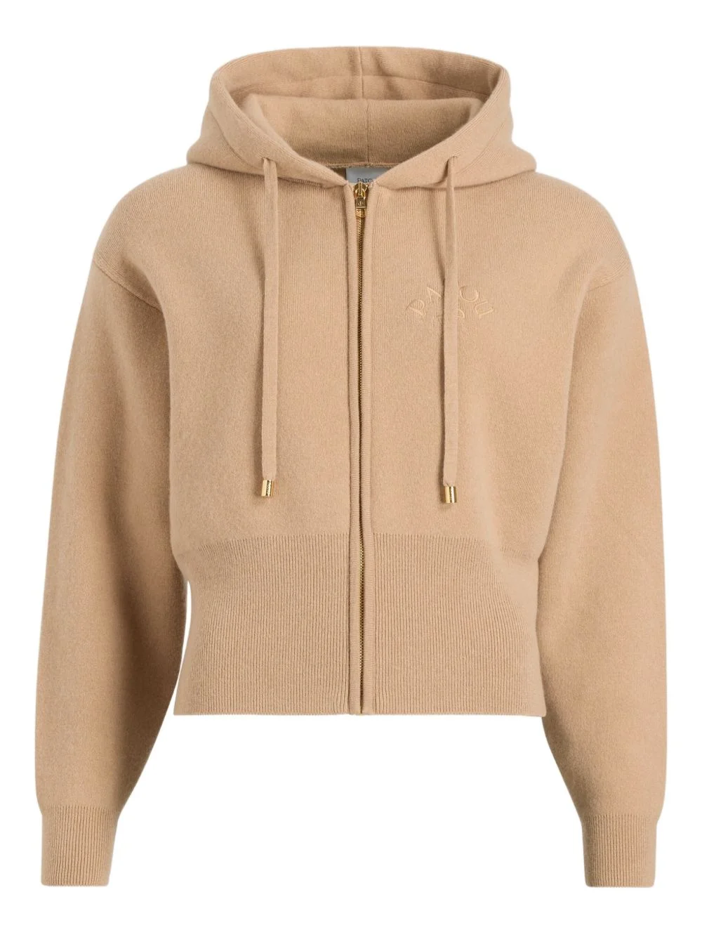 zip-up embroidered hoodie Highlights - Camel - Wool cashmere blend - Zip fastening - Hooded neckline - Embroidered logo - Ribbed hem Imported Composition Cashmere 100%, Merino 100% Washing instructions Dry Clean Only