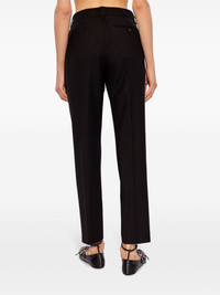 A Suit To Travel In tailored trousers Highlights - Black - Wool - Mid-rise - Belt loops - Concealed front fastening - Two side inset pockets - Two rear welt pockets - Pressed crease - Tailored cut Made in Italy Composition Wool 100% SIZE & FIT FittingInformation Designed for a slim fit, these trousers offer a close fit at the waist, allowing a comfortable close fit and some movement over the leg Made from a midweight non-stretch fabric This piece fits true to size – take your usual size