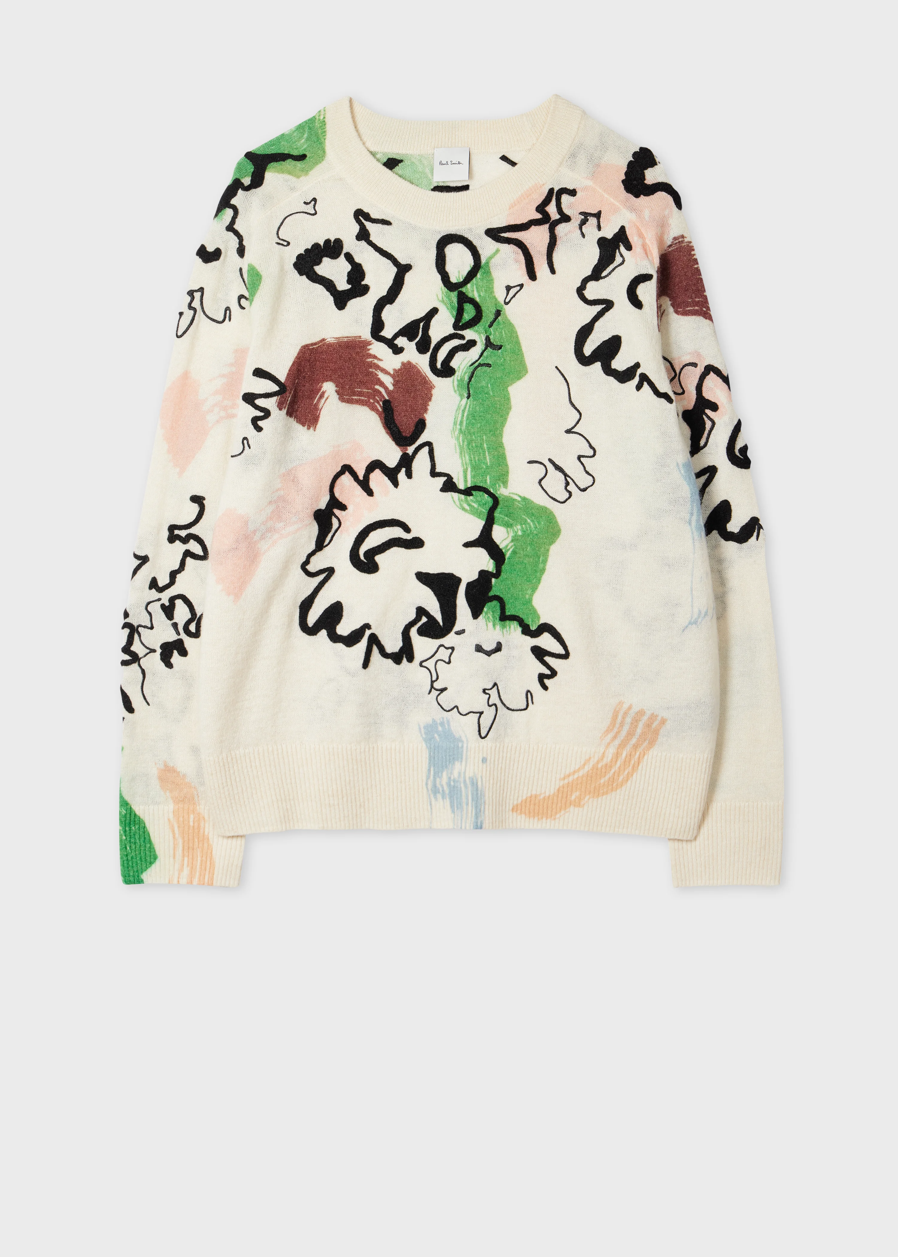 Crafted from an alpaca wool-blend, this cream sweater features a colourful 'Painters' pattern throughout. With an embroidered, textured overlay for added depth, this lightweight sweater is perfect for smart casual styling, and pairs perfectly with tailored trousers or casual denim for versatile transitional styling. The Size Model wears a size M Model measures: Height 5’11’’ / 180cm | Chest 30½’’ / 78cm | Waist 24’’ / 61cm The Fit Regular-fit is relaxed through the body Product Code: W1R-613N-T11157-02