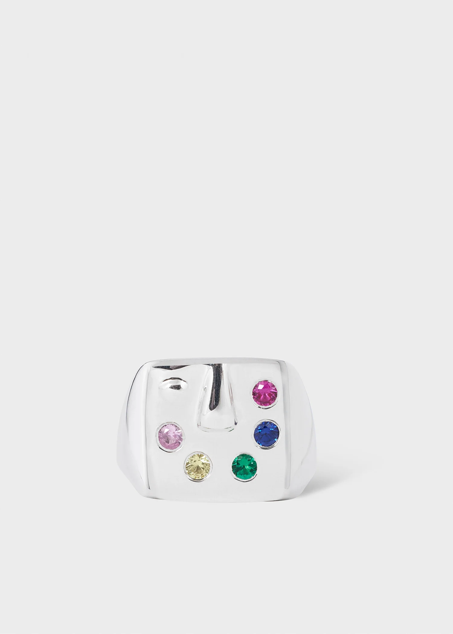Sterling silver, unisex ring. Hand carved jewellery with lab ruby, emerald and sapphires. * Made in Britain * Sterling Silver * Lab ruby, emerald and sapphires [b]Alec Doherty[/b] Alec Doherty is an artist working in London, UK. His work is about nuances of human behaviour, often focused on interaction and body language. Alec works with different mediums, from pencil on paper through to large scale sculpture. In 2021 Alec incorporated his jewellery company, an extension of his creative practice, creating fine jewellery for all genders. Made in Britain. His latest jewellery collection exclusive for Paul Smith, was inspired by the stories of challenging moments and turning points in the lives of his friends and family – the series gives us a glimpse into the lives of others; first kisses, going to prison, giving birth. Stories different to our own, but with shared emotion, a nervous energy we can all relate to and an ability to embrace change. The collection features six rings and eight necklaces which are made from silver set with Gemstones and engravings representing the wearer’s inner spirit. The Size M equals to a ring size Small Q equals to a ring size Medium U equals to a ring size Large Product Code: GRB-ALCD-AHRG1-82