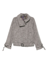 belted herringbone-pattern jacket