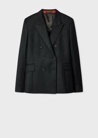 Made in Italy from a wool and cashmere-blend flannel cloth for a soft finish, this black two-button blazer features a double-breasted fastening. Cut to a straight fit with subtle shaping to the back and an exaggerated peak label for a feminine feel. The blazer features tonal soft viscose lining. The Size Model wears a size 40 (UK 8) Model measures: Height 5’11’’ / 180.5cm | Chest 30½’’ / 78cm | Waist 23’’ / 59cm The Fit - Straight-Fit Product Code: W1R-369JA-T00109-79
