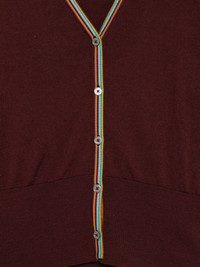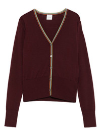 Signature Stripe-trim cardigan Highlights - Bordeaux red - Front button fastening - Long sleeves Imported Composition Merino 100% Washing instructions Machine Wash