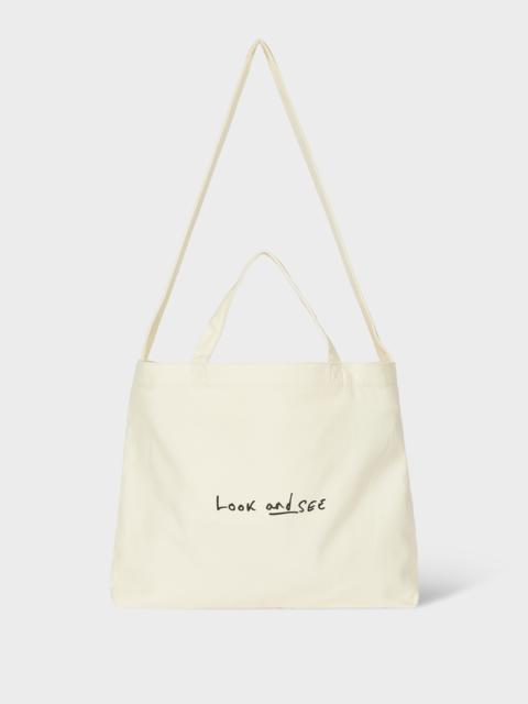 Made from 100% cotton canvas for durability, this ecru tote bag features an embroidered signature logo and a 'Look and see' quote from Paul, printed on the other side. Made as part of Floral St Summer Shop collection, this bag is ideal for carrying your daily essentials. Product Code: M1A-8284X-RQUOTD-02