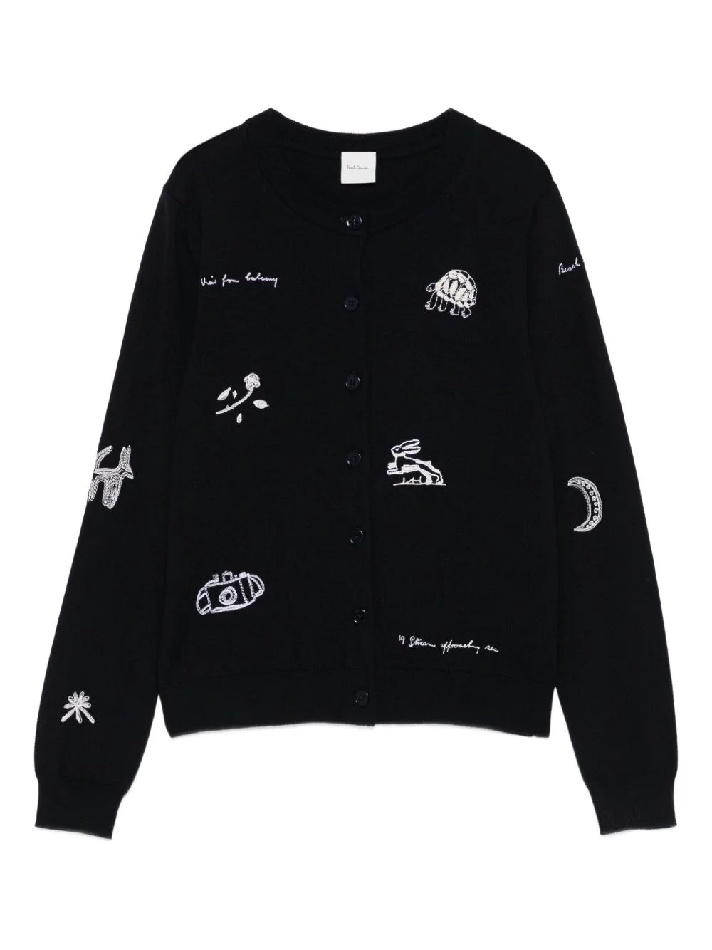 embroidered cardigan Highlights - Black - Front button fastening - Long sleeves Imported Composition Merino 100% Washing instructions Machine Wash