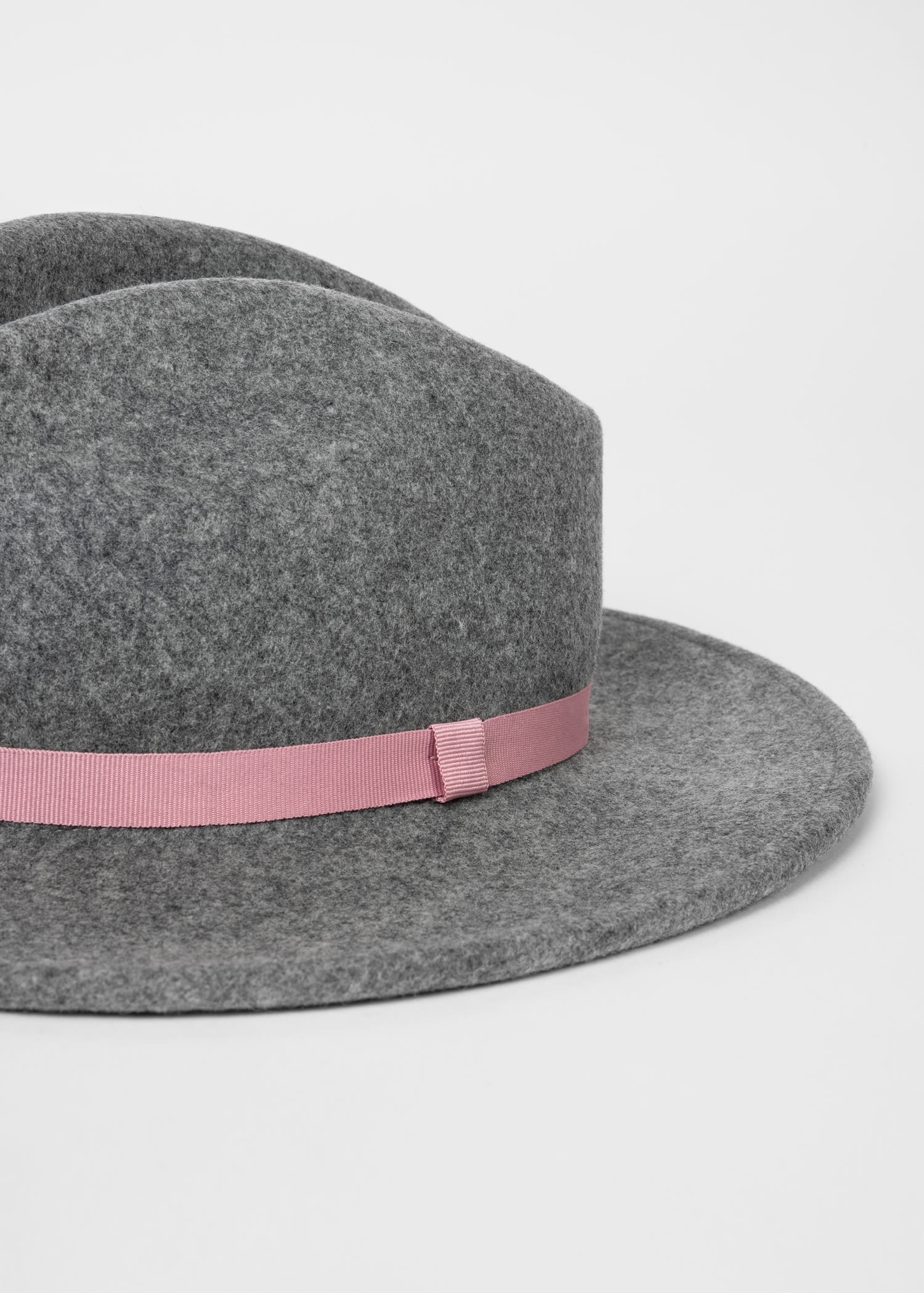 Crafted from 100% wool felt, this grey Fedora hat features classic styling with a pink grosgrain outer band. Guaranteed to elevate any outfit, this hat is complete with a colourful 'Swirl' lining and our Paul smith signature logo. 100% Wool Product Code: W1A-483DT-K087-70