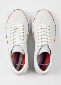 Made from smooth leather uppers, these white 'Lapin' sneakers feature a colourful 'Swirl' stripe band around the rim of each shoe. These sneakers are complete with rubber cupsoles and a gold-foil Paul Smith signature at the heel. Uppers: 100% Leather Soles: 100% Rubber Product Code: W1S-LAP71-JCAS-01