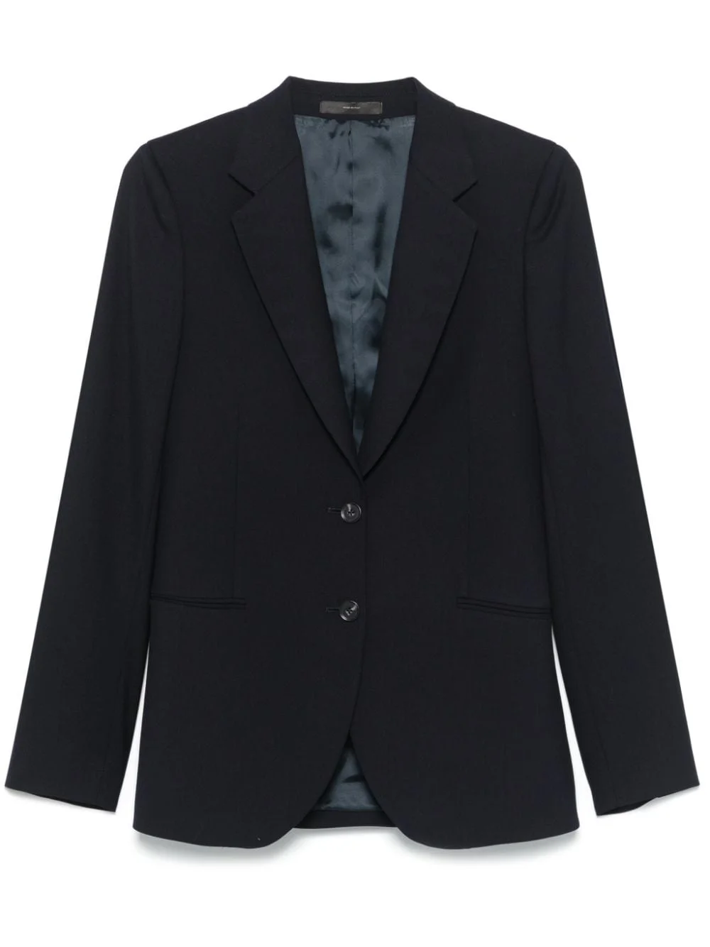 wool blazer Highlights - Navy blue - Wool - Front button fastening - Tailored design - Notched lapels - Shoulder pads - Long sleeves - Two front jetted pockets - Buttoned cuffs - Full lining - American rear vent - Straight hem Made in Italy Composition Lining: Viscose 100% Outer: Wool 100% Washing instructions Dry Clean Only