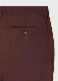 Made in Italy as part of the Paul Smith 'A Suit To Travel In' collection, these burgundy trousers are constructed using a high-twist 100% wool yarn to create a quick recovery, crease-resistant cloth; providing a versatile and highly-practical piece of tailoring. The Size Model wears a size 40 (UK 8) Model measures: Height 5’11’’ / 180cm | Chest 30½’’ / 78cm | Waist 24’’ / 61cm The Fit - Slim-Fit Product Code: W1R-264T-N00001-29A