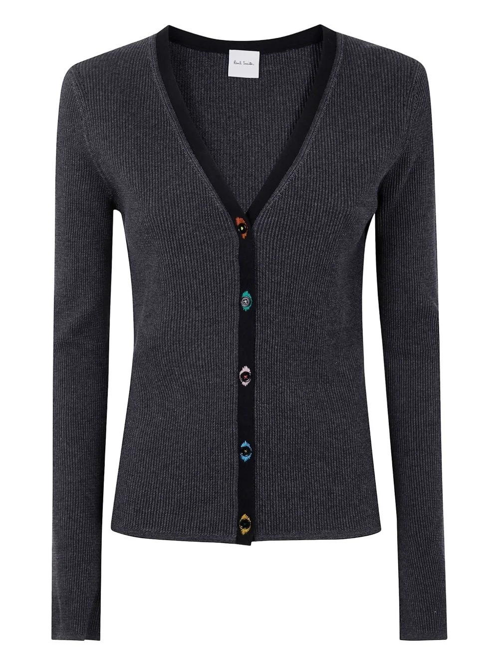 ribbed cardigan Highlights - Black - Ribbed knit - V-neck - Long sleeves - Button front Imported Composition Fabric 100% Washing instructions Read Manufacturer Guidelines