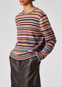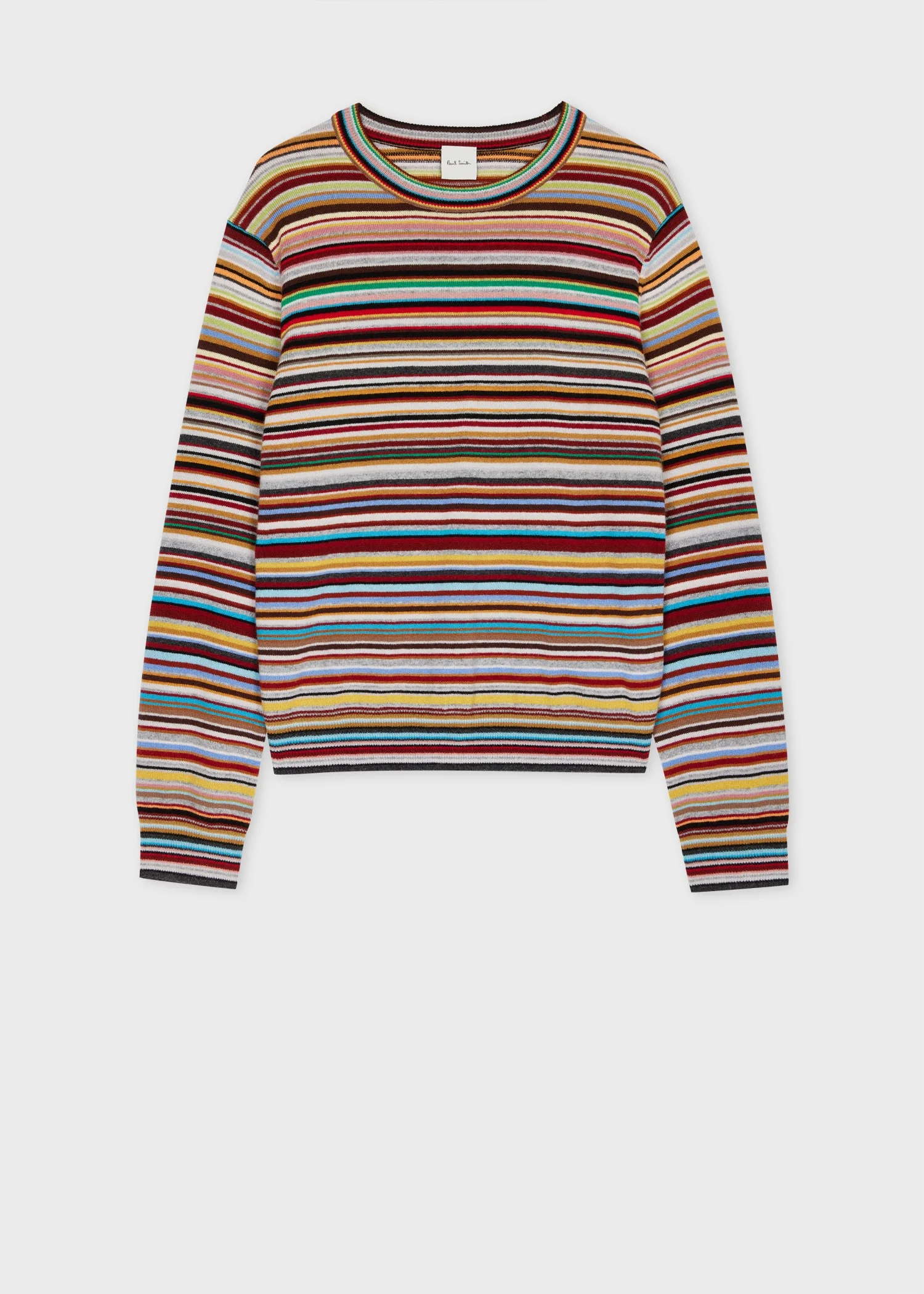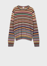Crafted with luxurious cashmere, this crew neck sweater features our iconic 'Signature Stripe' pattern throughout and is finished with ribbed cuffs, a collar, and waistband. 100% Cashmere Hand Wash Cold The Fit Relaxed-Fit Product Code: W1R-486N-N11052-92