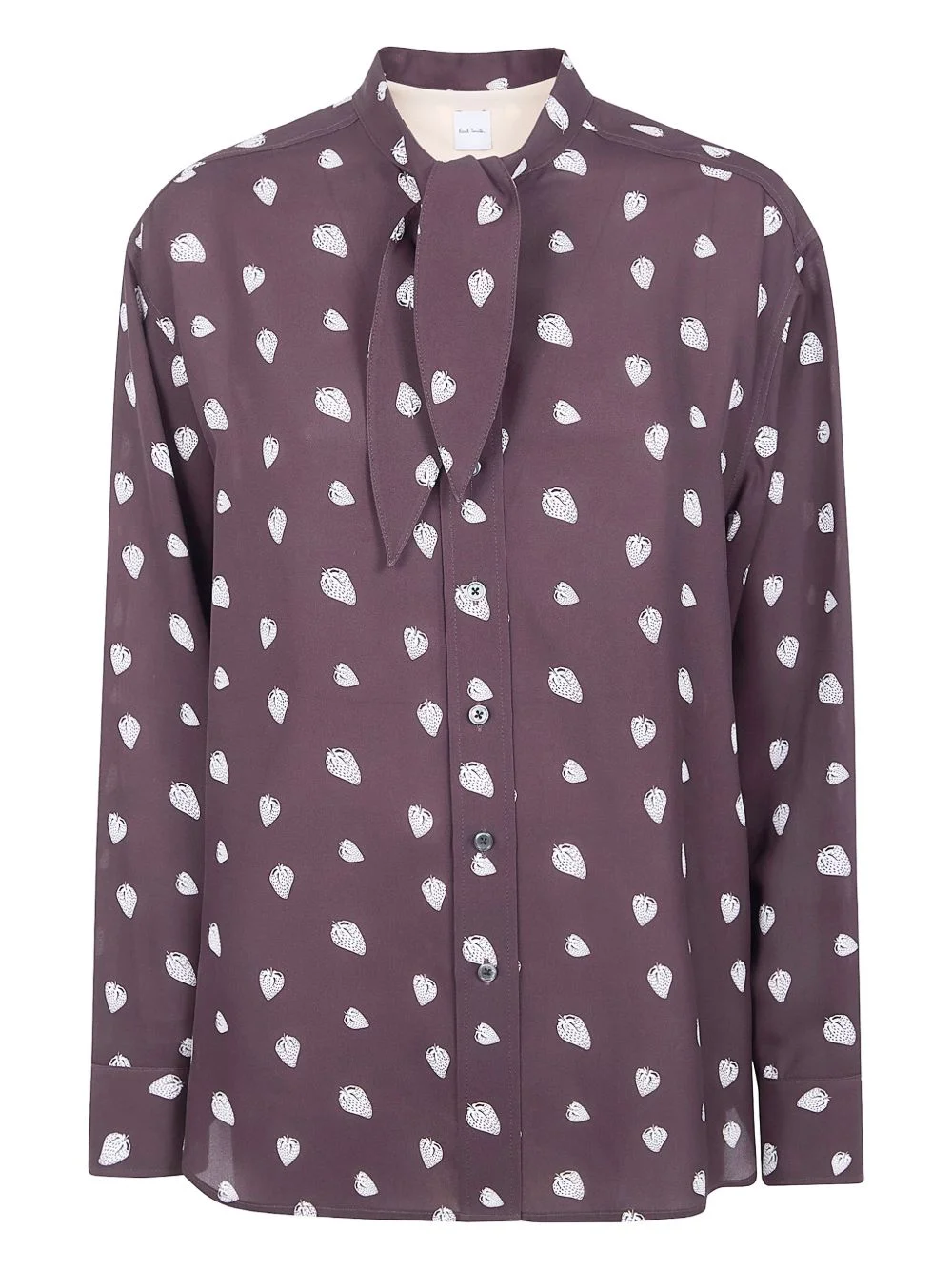 strawberry-print tie shirt Highlights - Brown - Strawberry print - Tie detail - Button fastening - Long sleeves - Buttoned cuffs Imported Composition Viscose 100% Washing instructions Read Manufacturer Guidelines
