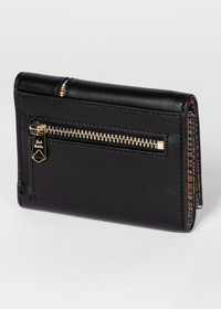 Black Mini Leather Tri-Fold Purse with 'Signature Stripe' Trim