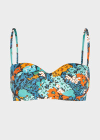 This bandeau bikini top features a blue 'Tropical Floral' pattern throughout. This top is finished with a turquoise lining and a slightly padded cup. Woven, 86% Polyamide, 14% Elastane Machine Washable Product Code: W1A-318F-KU339-42