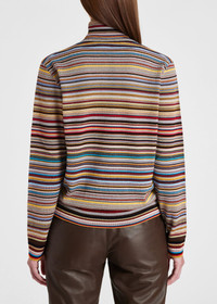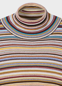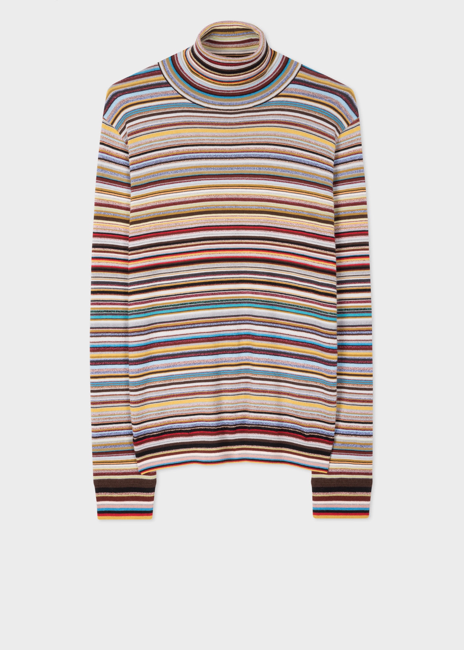 Made in Italy from a soft virgin wool blend, this turtle-neck sweater features a 'Signature Stripe' pattern throughout, and is complete with a ribbed waistband and cuffs. Pair with a neutral, tailored jacket for an elevated, smart-casual look. Made in Italy 76% Virgin Wool, 16% Viscose, 8% Metallized Fibre Hand Wash Only Product Code: W1R-124N-J10804-92