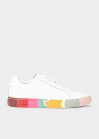 Made from smooth leather uppers, these white 'Lapin' trainers feature a colourful 'Swirl' stripe sole on each shoe. These trainers are complete with rubber cupsoles and a gold-foil Paul Smith signature at the heel. Uppers: 100% Leather Soles: 100% Rubber Product Code: W1S-LAP83-MCAS-01