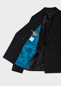 Made in Italy from a luxe wool crese-resistant composition this classic black suit comprises of a straight-fit double-breasted blazer and matching bootcut trousers. The blazer features subtle shaping to the back and an exaggerated peak lapel for a feminine silhouette. The blazer also features tonal buttons, functioning cuffs and contrast cupro lining with 'Signature Stripe' detailing Completing the suit, the trousers feature a zip fly, button-fastened waistband, and twin button-fastening pockets to the back. 100% Wool Dry Clean Only Made in Italy The Fit Blazer: Straight-Fit Trousers: Bootcut Product Code: W1R-SUIT2-N00001-79