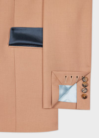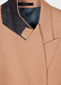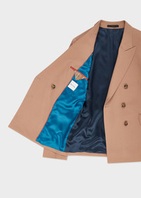 Made in Italy from a luxe wool crese-resistant composition this taupe blazer features a double-breasted fastening. Cut to a straight fit with subtle shaping to the back and an exaggerated peak lapel for a feminine feel. The blazer features a contrast lining and 'Signature Stripe' trims. 100% Wool Dry Clean Only Made in Italy The Fit Straight-Fit Product Code: W1R-369JA-N00001-60