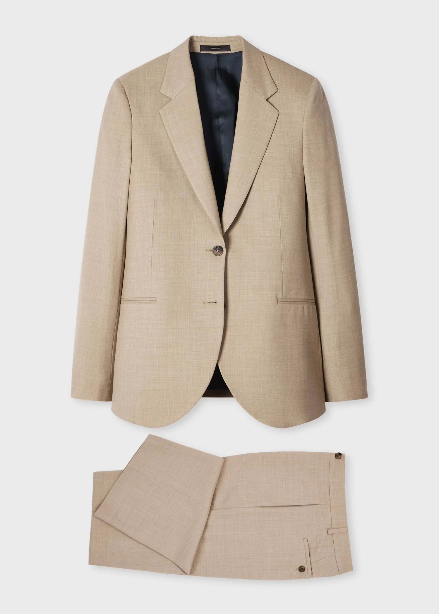 Made in Italy as part of the Paul Smith 'A Suit To Travel In' collection, this stone wool suit features a two-button blazer and bootleg fit trousers, both using a high-twist yarn to create a quick recovery, crease-resistant, highly practical piece of tailoring. The Fit - Tailored-Fit Product Code: W1R-SUIT-N00001-60A
