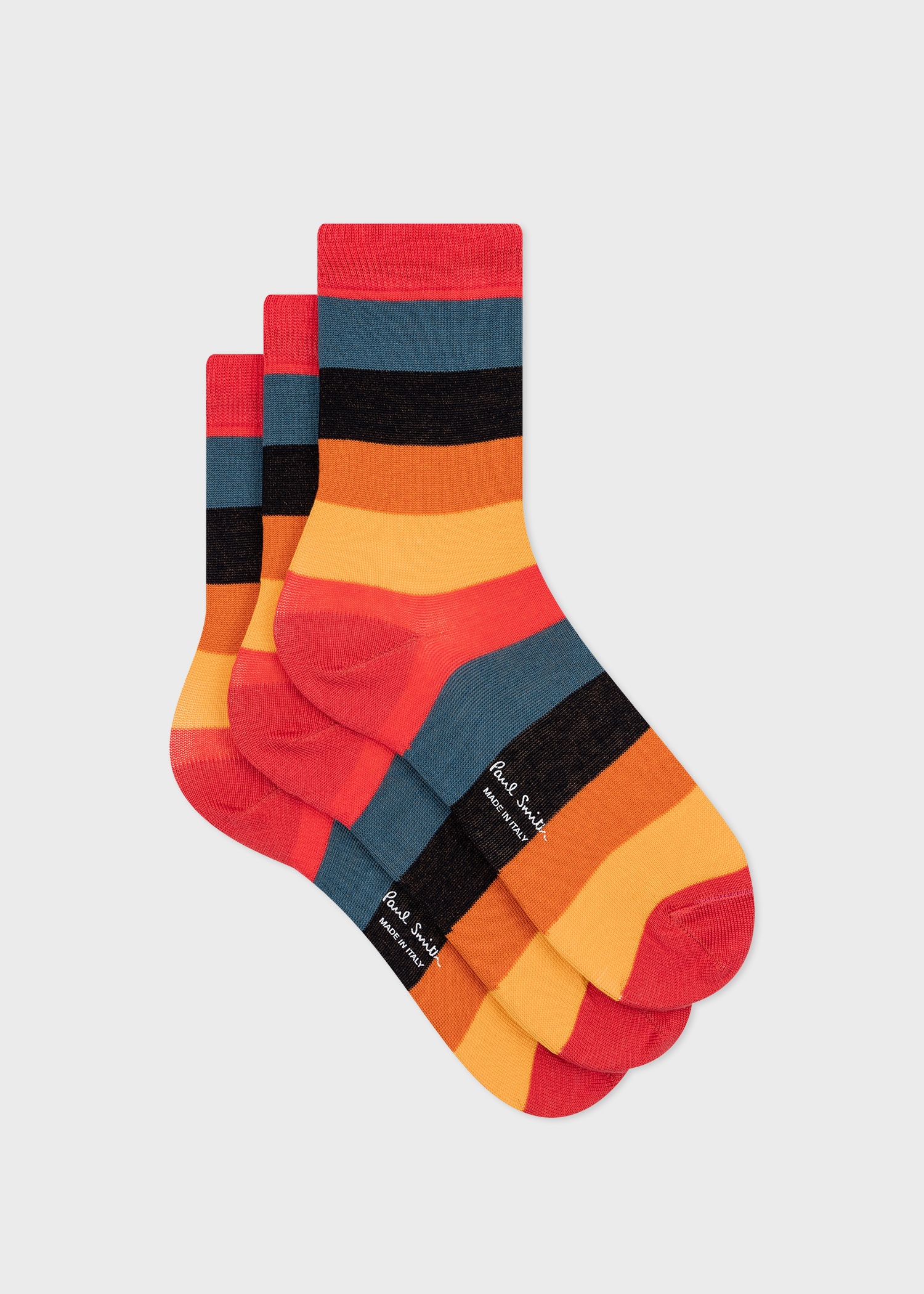 Made in Italy from a cotton-blend, this three pack of vibrant socks features the colours from our 'Artist Stripe' in block stripes throughout. One size 74% Mercerised Cotton, 24% Polyamide, 2% Elastane Machine washable Made in Italy Product Code: W1A-SOCK-AF691-25