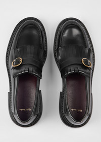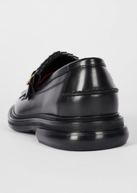 Made in Portugal, the black 'Belinho' loafers boast a sturdy leather upper, decorated with tassel and buckle strap detailing for a modern touch. Complete with tonal stitching throughout and a leather sole embossed with stripe detailing for a secure fit. The contrast-rich leather interior features 'Signature Stripe' tape detailing to the rim and is complete with gold-foil signature branding for a luxury touch. Product Code: W1S-BHO01-TLEA-79