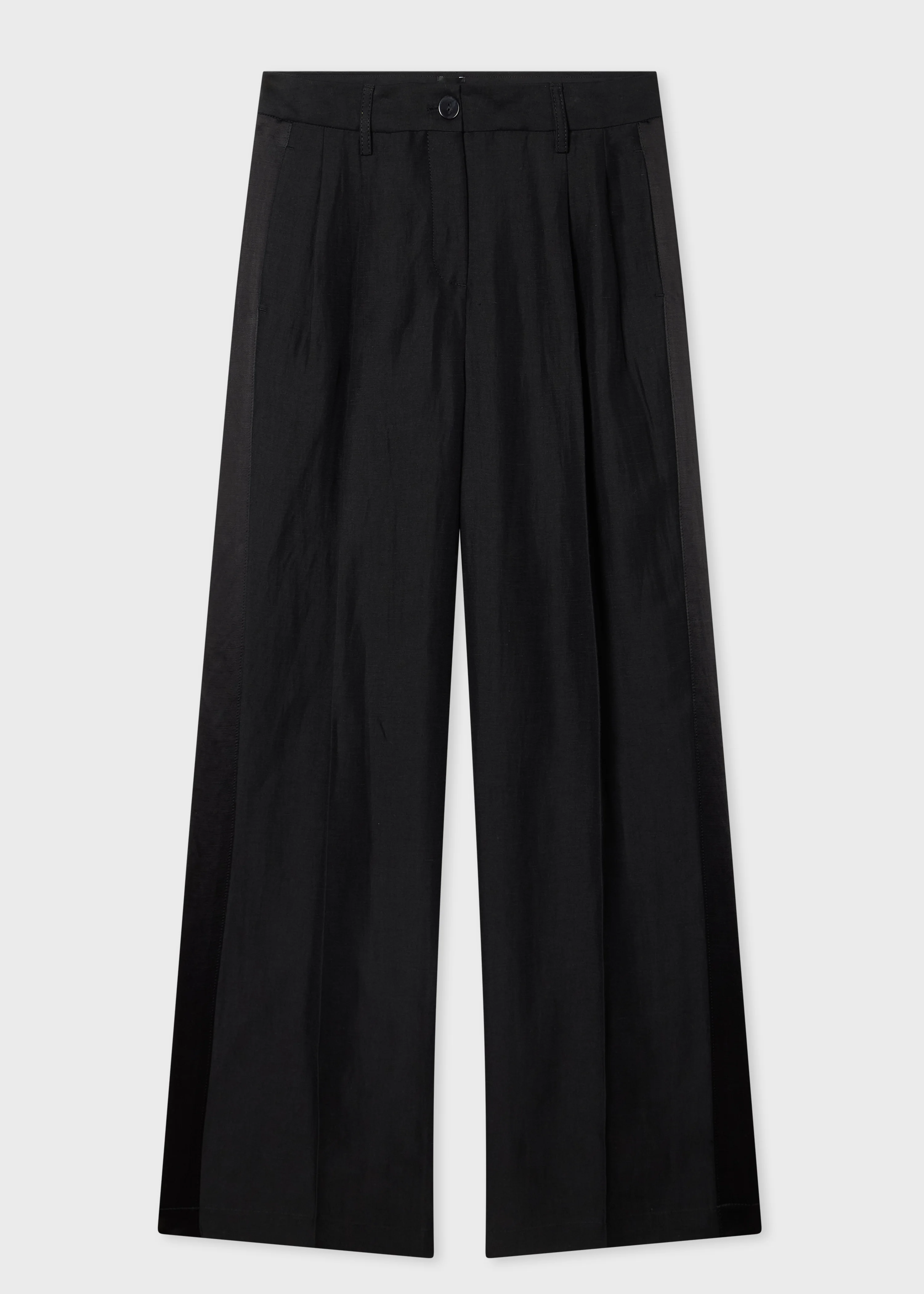 Women's Black Contrast Satin Wide-Leg Trousers
