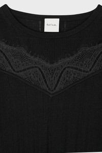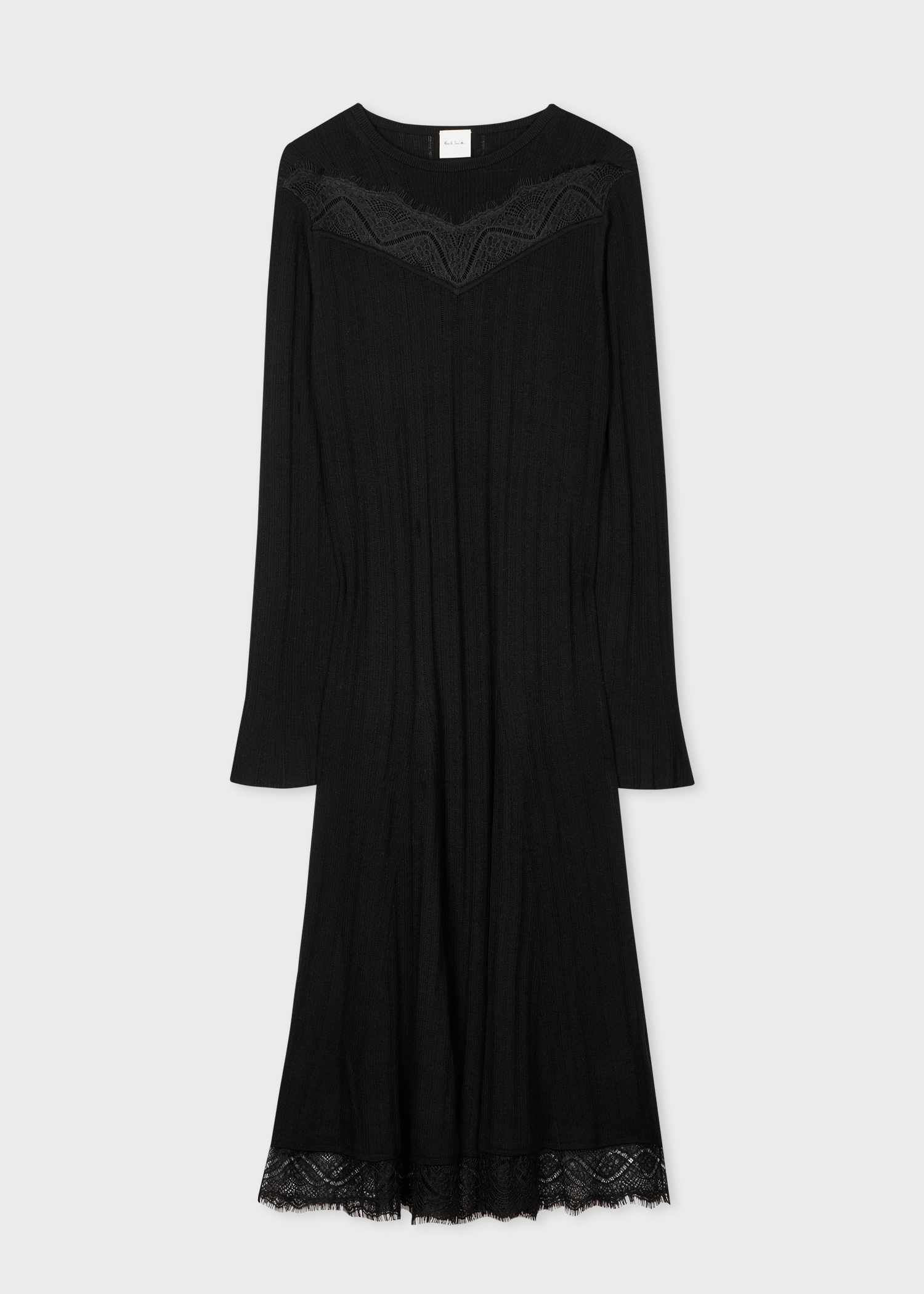 Elevate your wardrobe during the transitional season with this knitted black dress, featuring intricate lace inserts for a feminine touch. This long-sleeved midi dress design features fit and flare styling and pointelle knit construction for a light and floaty feel. Pair this dress with an additional lightweight layer or wear it individually on a breezy night with sleek ankle boots. 100% Wool Trim: 100% Polyester Woven Hand wash only The Fit Regular-Fit Product Code: W1R-498N-N11065-79