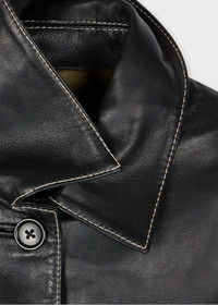 Elevate your layering with this lightweight black leather jacket, decorated with contrast stitching for a modern touch. Cut to a boxy slightly cropped fit, the jacket features twin-lined pockets and contrast viscose lining. Style the jacket with soft tailored pieces for an understated look. 100% Leather Lining: 100% Viscose Special leather cleaning only Real leather is a natural product, variations and imperfections are part of the appeal that makes each item unique. The Fit Regular-Fit is relaxed through the body. Product Code: W2R-298JL-P31161-79