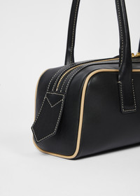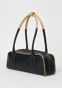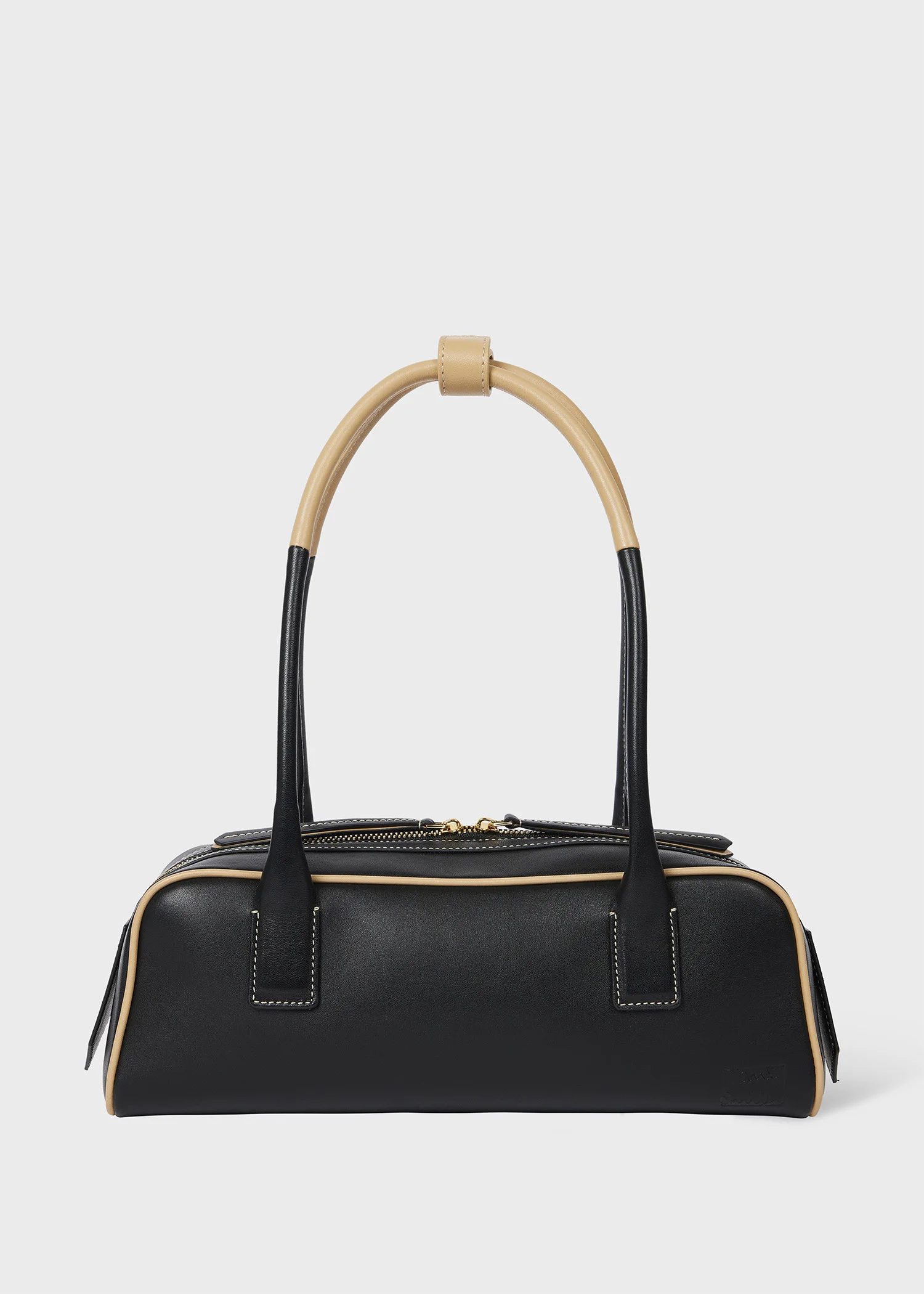 Crafted in Spain from luxurious, soft leather, this shoulder bag boasts a slim, vintage-inspired, structured silhouette for a refined touch. Finished with distinguished brand touches, including dual leather tab zip pull and elongated handles that are encased in a press stud tab and a tonal signature logo badge for the finishing touch. Product Code: W1A-8228-TCBLOC-79