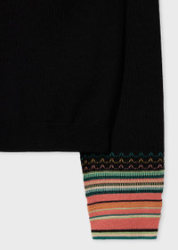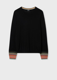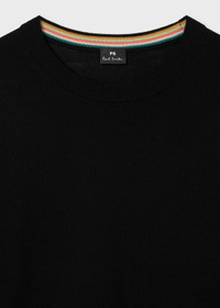 Crafted from premium merino wool, this black sweater features contrast stripe detail at the cuffs for a subtle touch of signature style. Cut for a regular fit, this versatile knitwear piece is perfect for seasonal layering. Finished with a ribbed collar, cuffs, and hem for a comfortable and flattering silhouette. The Fit - Regular-Fit Product Code: W2R-577N-T31327-79