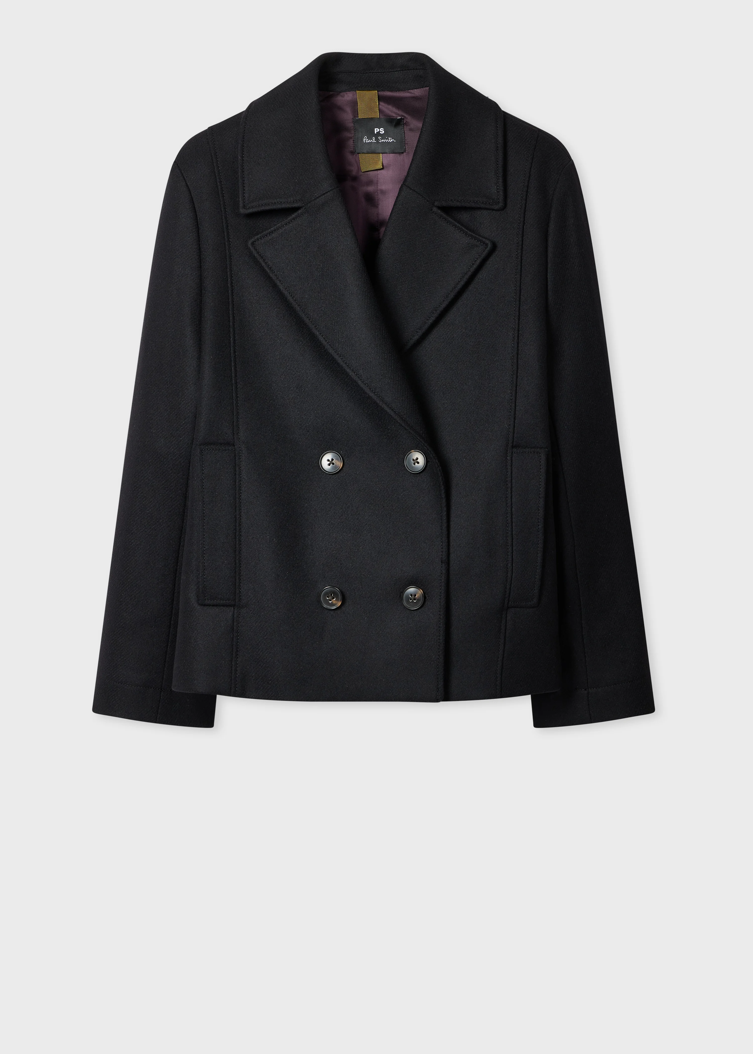 Women's Black Wool-Cashmere Blend Short Pea Coat