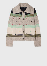 Made from a wool and cotton blend, this cardigan features an ecru base decorated with a block stripe design in mixed knit techniques and colourways, and additional tassels for added texture. Designed with a shawl collar, ribbed trims, and contrast buttons along the placket, this standout piece blends comfort with character. The Fit - Regular-Fit is relaxed through the body. Product Code: W2R-801N-V31413-08
