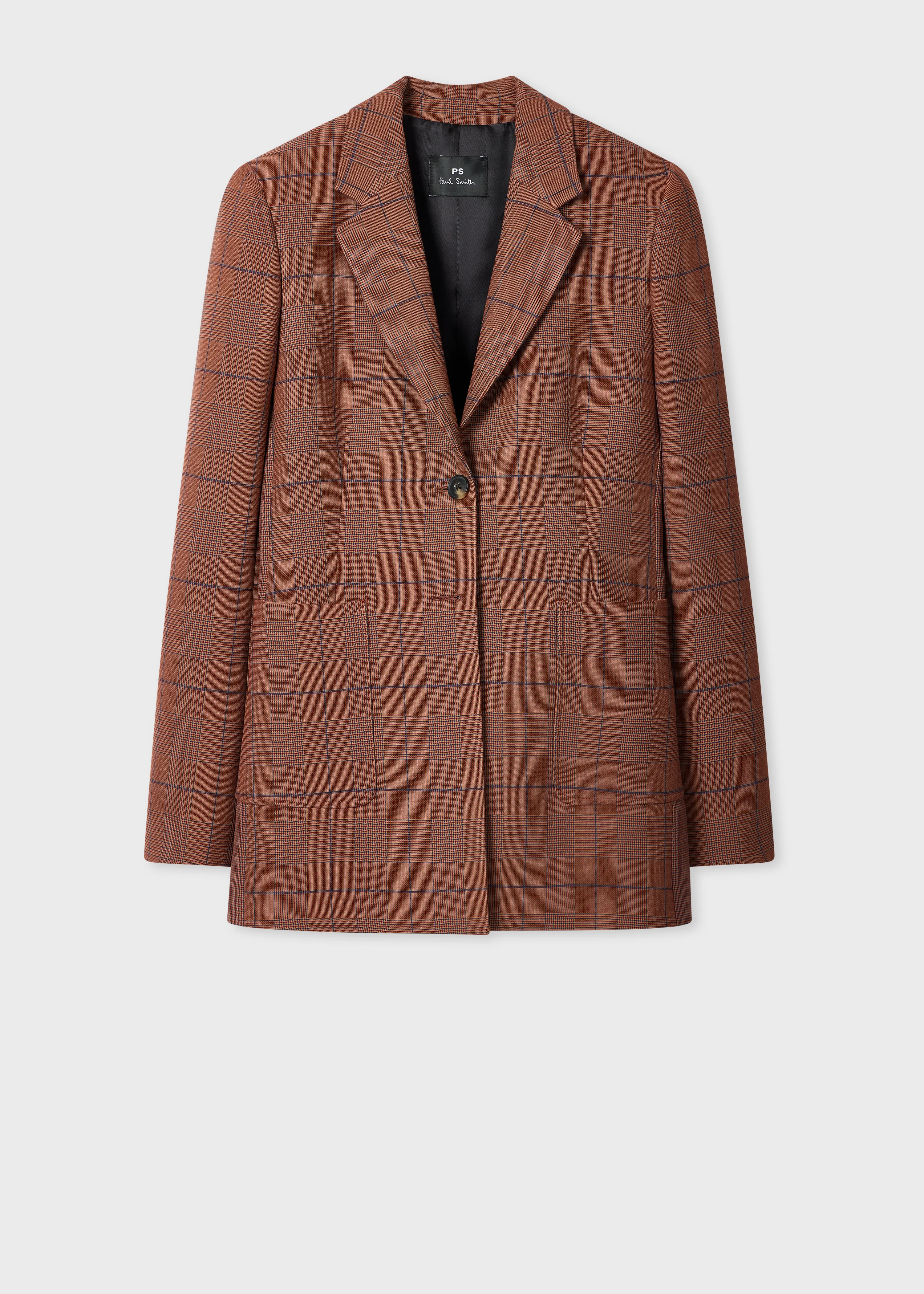 Crafted in Portugal from a recycled polyester blend, this brown longline blazer features a check design throughout. Designed with clean lines, tailored details, and oversized patch pockets above the hem, this versatile piece can be styled with matching trousers for a complete look or paired with jeans for a smart-casual ensemble. The Size Model wears a size 40 (UK 8) Model measures: Height 5’11’’ / 180cm | Chest 32½’’ / 83cm | Waist 23½’’ / 60cm The Fit - Longline Tailored-Fit Product Code: W2R-372JC-T31345-19