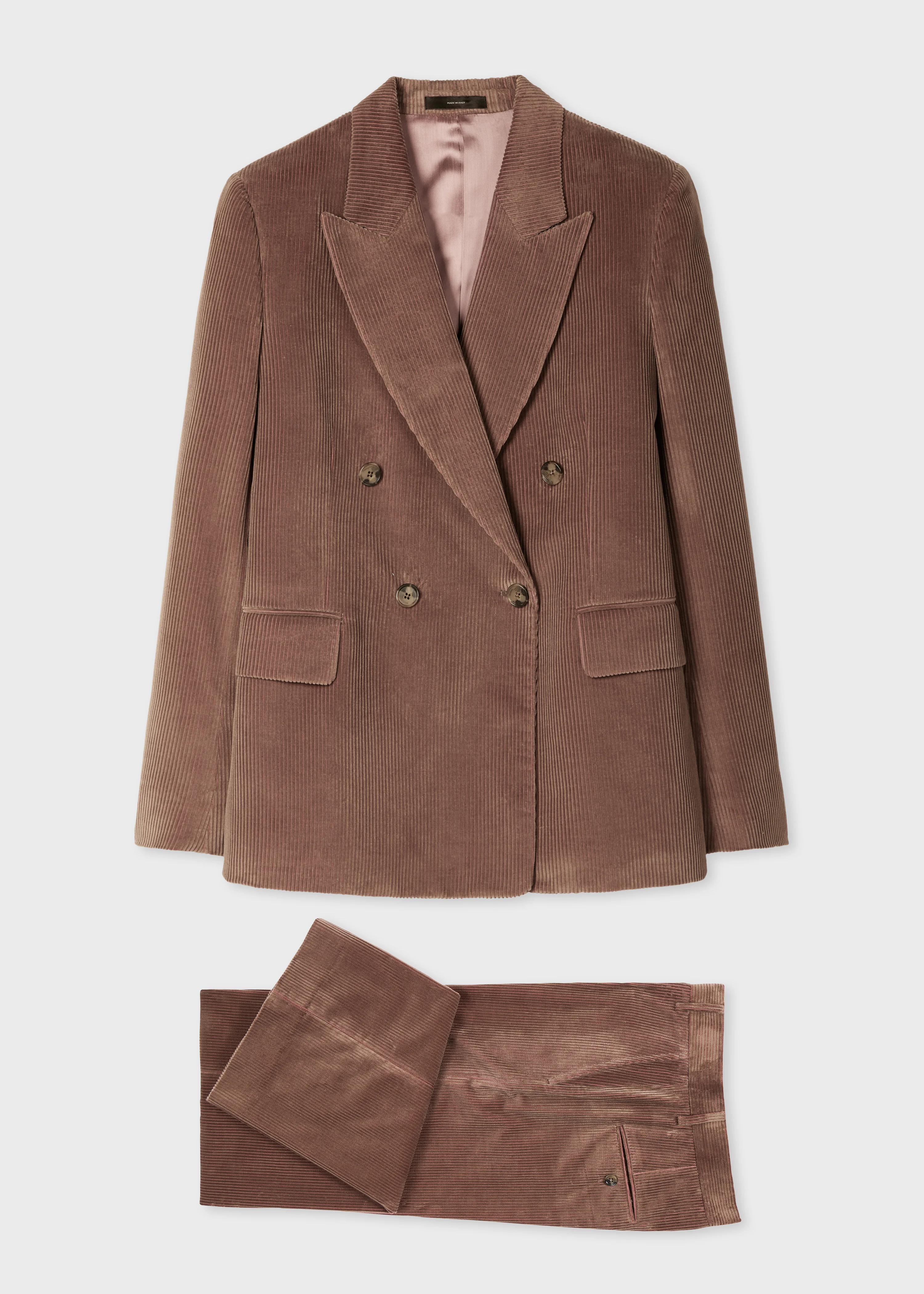 Made in Italy from a cotton composition, the brown suit features a cord construction with a pink base for added depth. Designed in a double-breasted silhouette, it features a shaping at the back for a structured yet feminine fit and exaggerated lapels for a vintage-inspired touch. The wide-leg trousers feature a cord construction with a pink base for added depth. The trousers feature twin-side seam pockets and back pockets with button fastenings. Product Code: W1R-SUIT-T02792-20