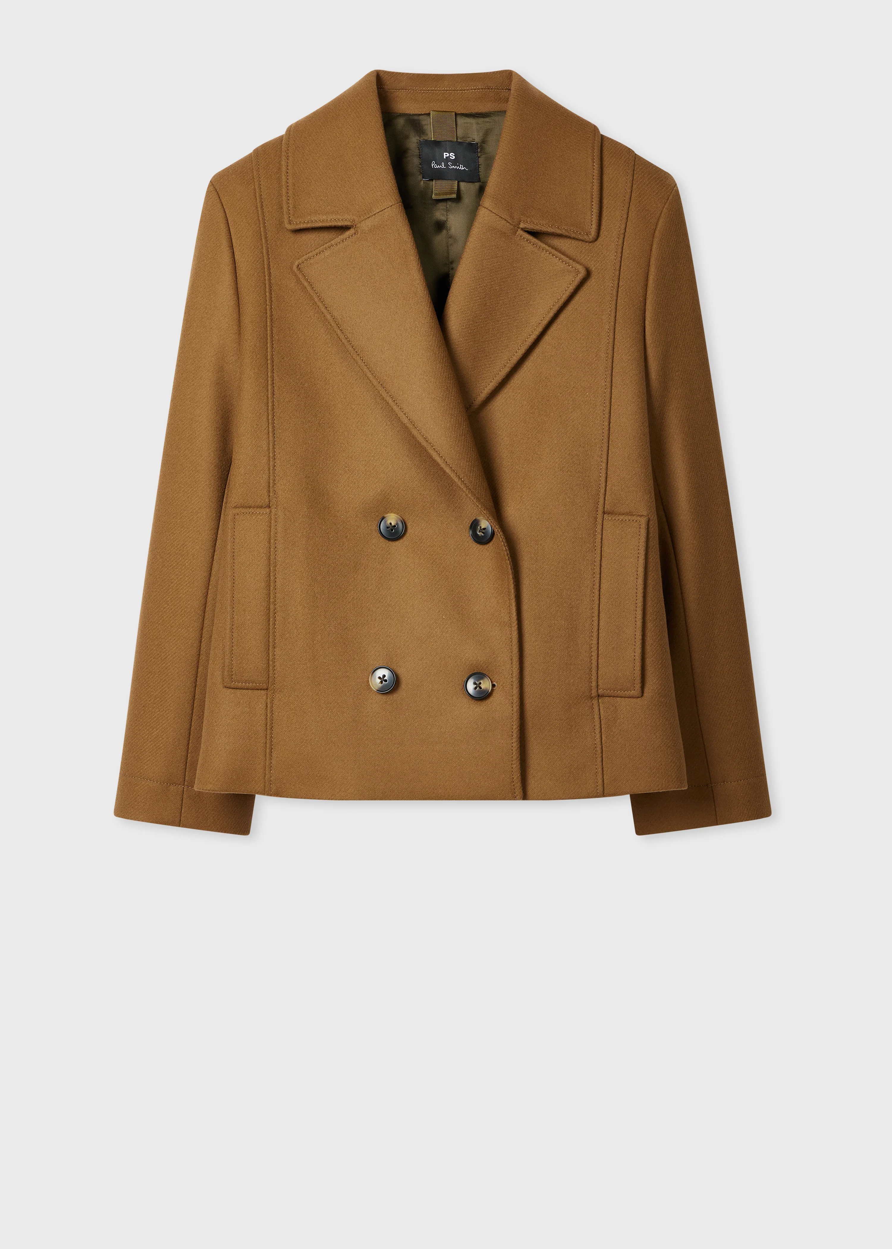 Crafted in Portugal from a blend of wool, polyamide, and cashmere, this lightweight style showcases a classic pea coat silhouette, slightly cropped for a modern touch. This versatile jacket can be styled for casual and smart-casual looks, complemented with a pointed collar, double-breasted fastening with tonal buttons, and contrast soft viscose lining. The Size Model wears a size 40 (UK 8) Model measures: Height 5’11’’ / 180cm | Chest 32½’’ / 83cm | Waist 23½’’ / 60cm Product Code: W2R-282C-T21059-65A