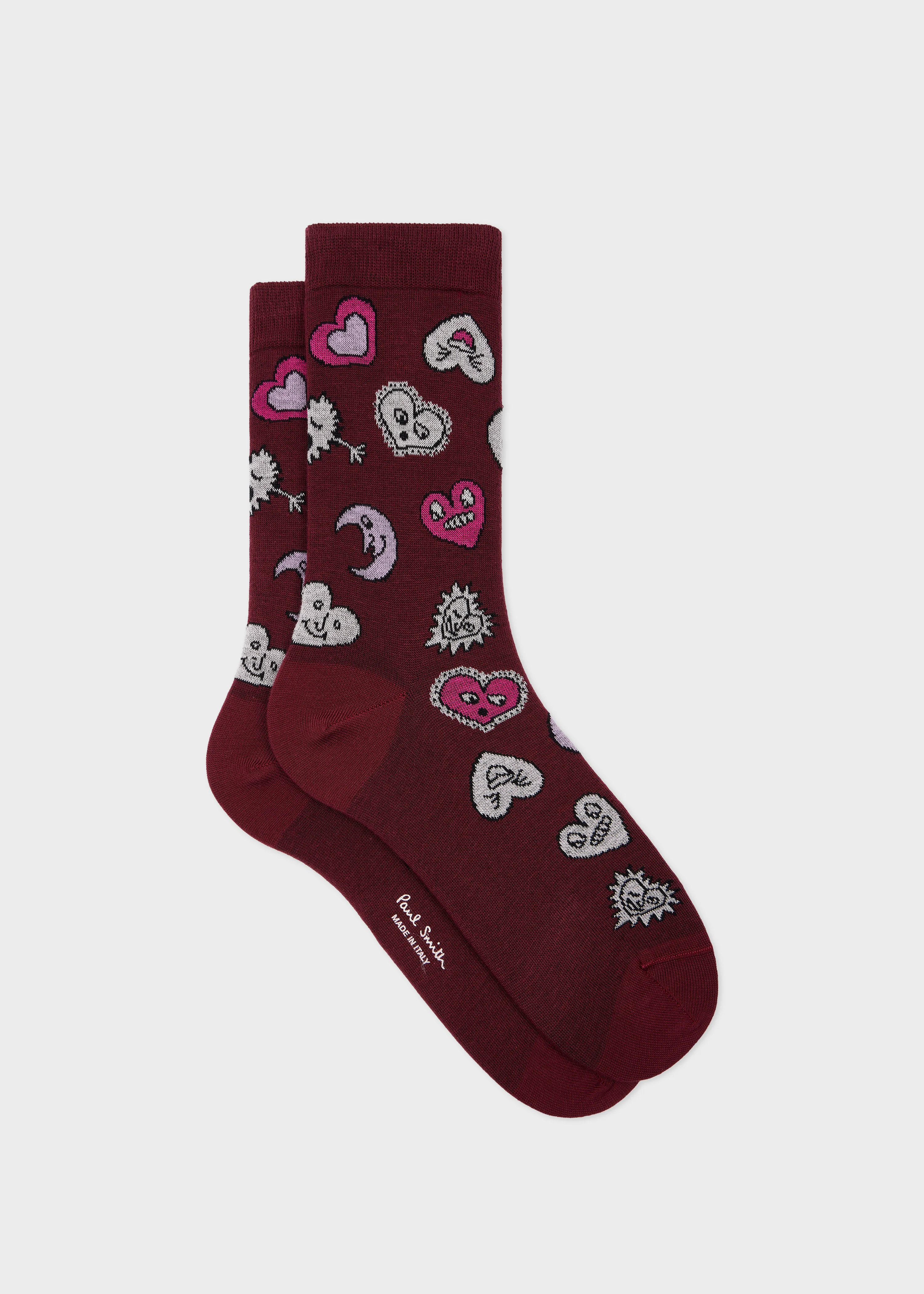 Women's Burgundy 'Hearts and Stars' Cotton-Blend Socks