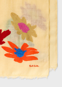 Made from a soft wool, this buttercup yellow scarf features a colourful 'Desert Floral' tufted embroidered motif for a standout design. The scarf is scarf is expertly finished with rolled, hand-stitched edges. Perfect for adding a pop of colour to your attire. Product Code: W1A-250M-U963-01