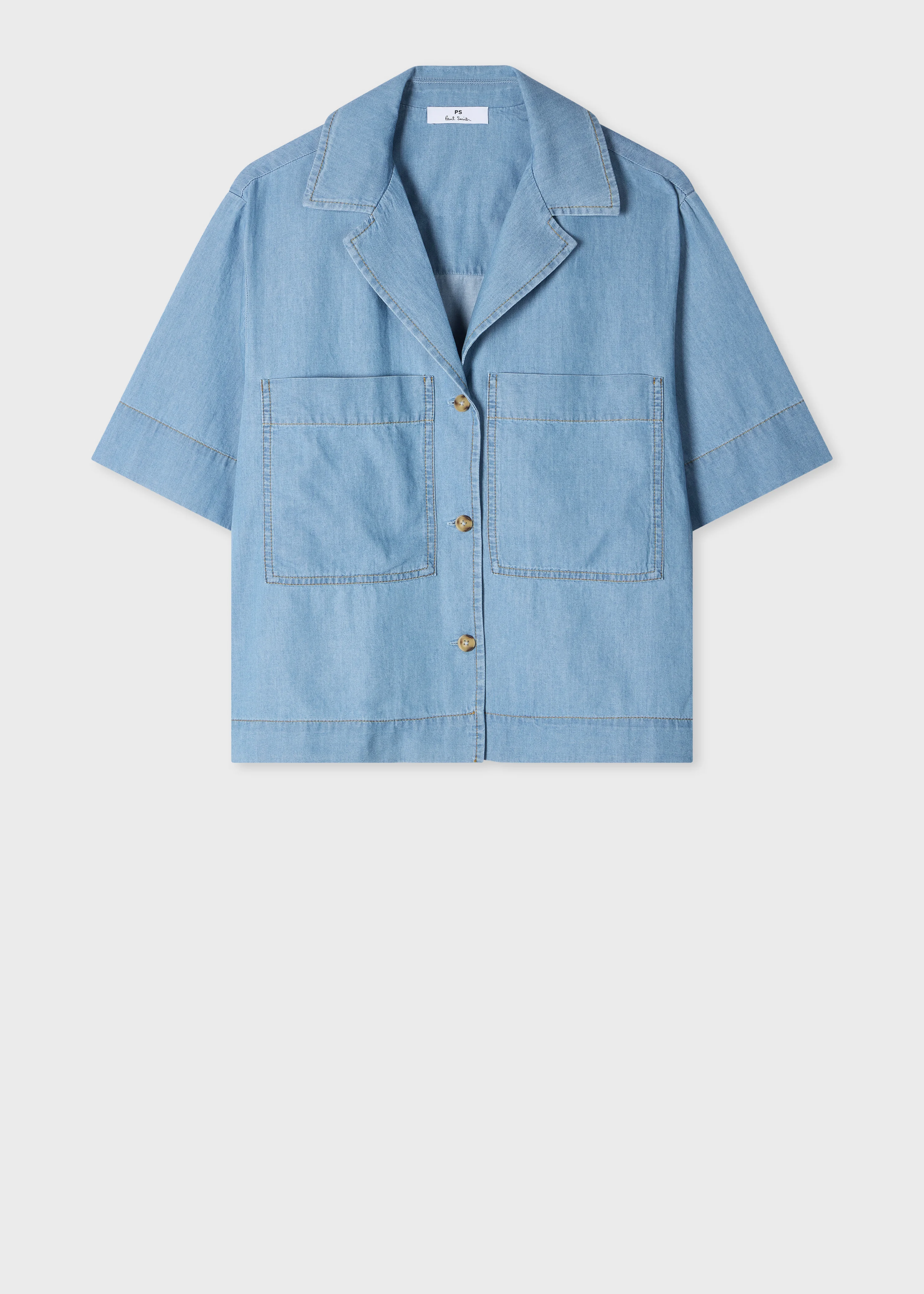 Made in Portugal from a lightweight cotton chambray this short-sleeve shirt is cut to a boxy, slightly cropped fit and features oversized patch pockets to the chest. Complete with contrast stitching for for an overall vintage denim-inspired look. Pair with matching trousers for a modern co-ord or wear open, overlaying a vest for versatile styling this season. The Size Model wears a size 40 (UK 8) Model measures: Height 179cm / 5'10'' | Chest 77cm / 30.5'' | Waist 60cm / 23.5'' The Fit - Boxy, slightly cropped fit Product Code: W2R-402B-V31051-42