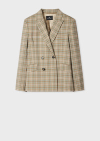 Women's Cream and Blue Check Double-Breasted Blazer